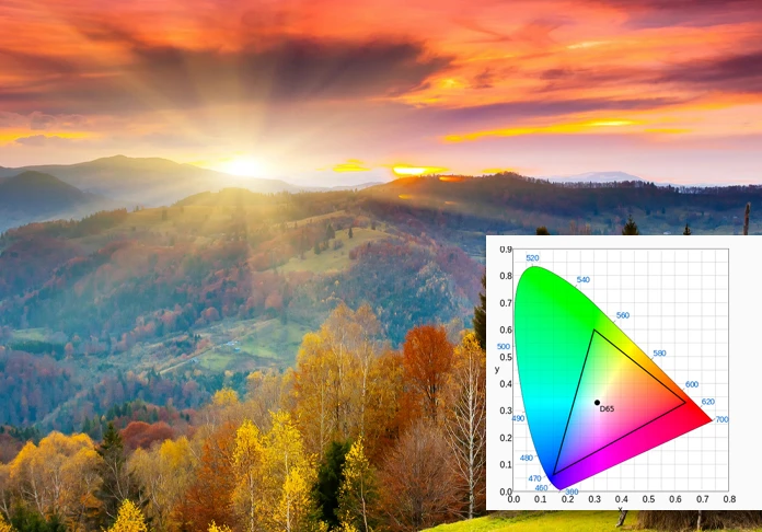 Couvre la norme Rec.709 pour des couleurs précises et de qualité HD, associant une large gamme de couleurs à une luminosité élevée.