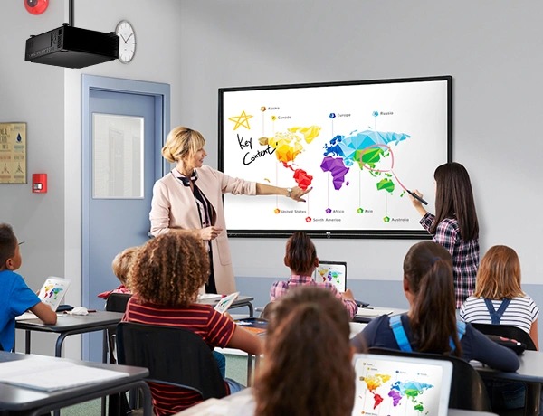 Conception compacte avec 7 400 lumens ANSI et une résolution WUXGA. Lentilles motorisées et interchangeables (courte/standard/longue portée) pour s'adapter aux différentes salles de classe.