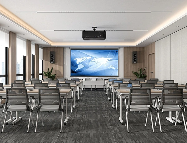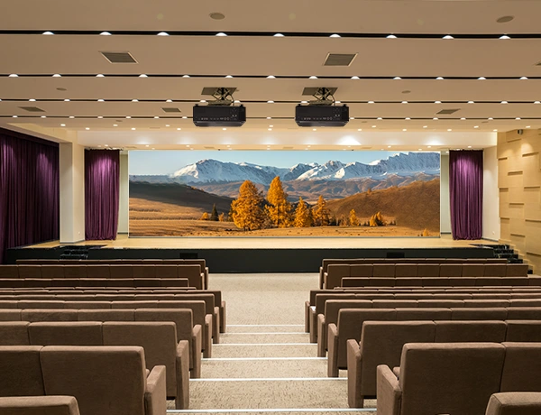 Plus de 90% d'uniformité de luminosité avec mélange des bords pour assembler plusieurs projecteurs en un écran ultra-large, adapté aux auditoriums des écoles de toutes tailles.