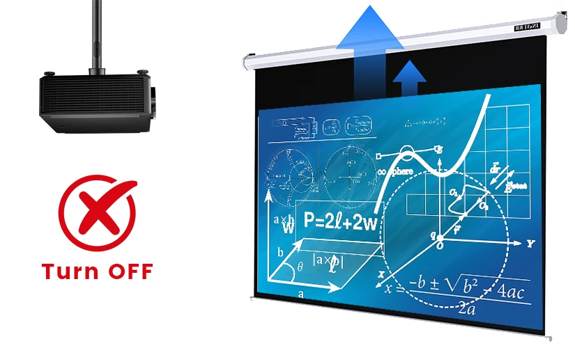 Sous tension, l'écran descend ; hors tension, l'écran se rétracte. Le déclencheur 12V relie les écrans motorisés, les ascenseurs et autres dispositifs au projecteur afin que leurs actions restent synchronisées et que les cours se déroulent sans encombre.