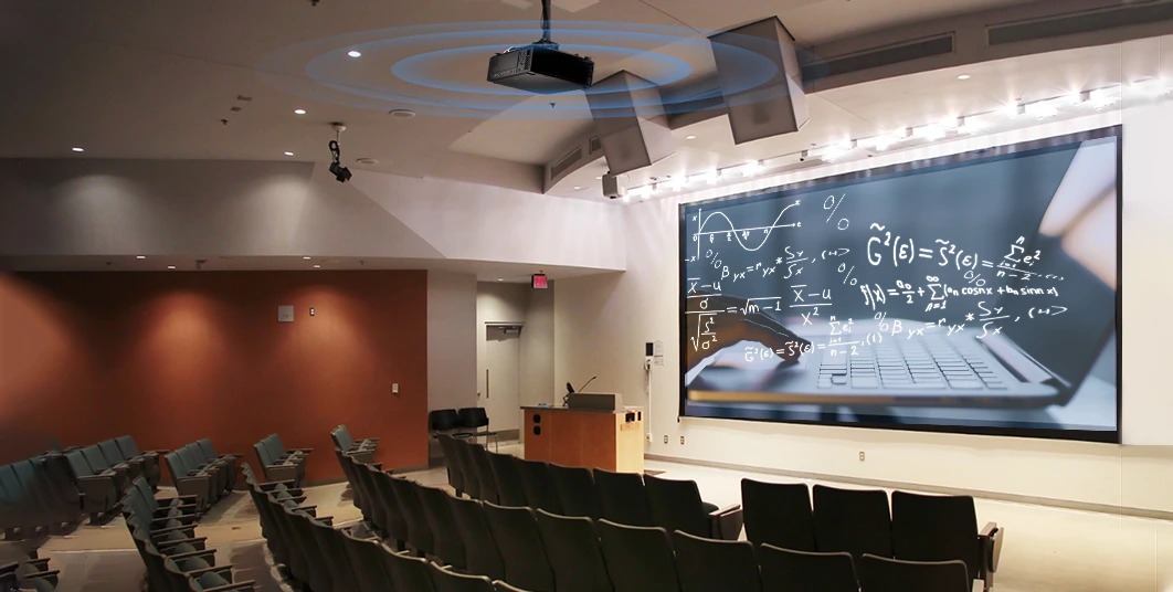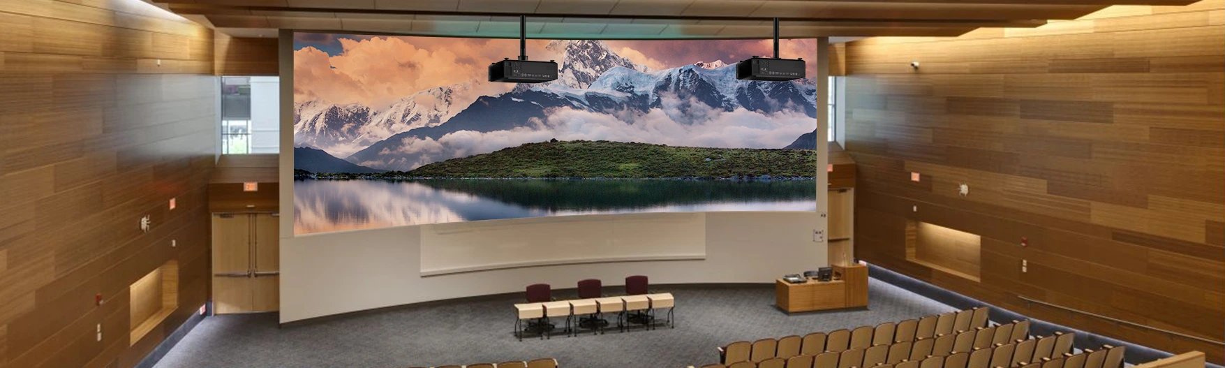 Plus de 90% d'uniformité de luminosité avec mélange des bords pour assembler plusieurs projecteurs en un écran ultra-large, adapté aux auditoriums des écoles de toutes tailles.