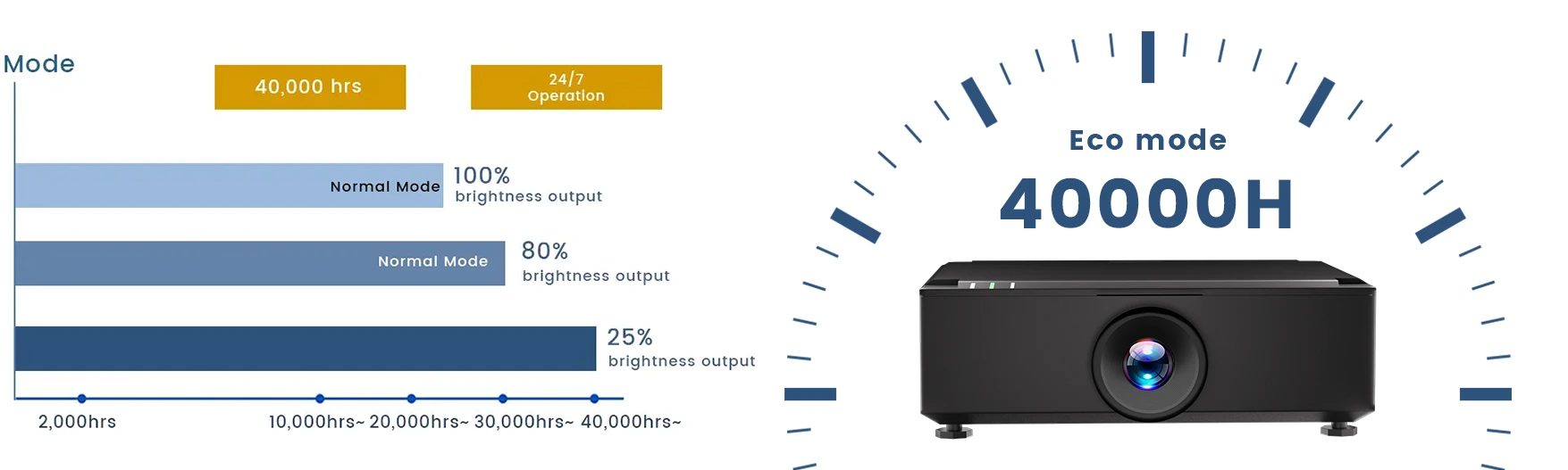 En mode Eco, le projecteur offre jusqu'à 40 000 heures de fonctionnement tout en économisant de l'énergie.