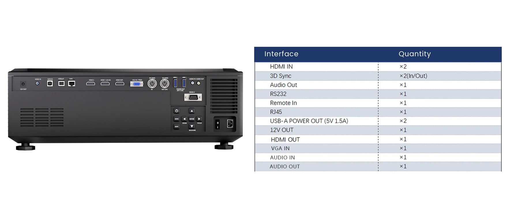 Puce : 0,67" DMD ×1 Synchronisation 3D ×2 (IN/OUT)